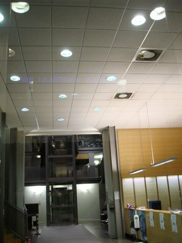CEILING PANEL PREPAINTED ALUMINIUM or STEEL WITH HOLES DIAMETERS or DIMENSION CUSTOMIZED FOR THE CLIENT REQUEST COMPLETE WITH THE RENFORCED FIREPROOF TILE APPLIED ON THE BACK OF EACH PANEL