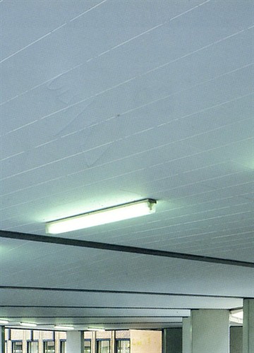 False ceilings system composed with linear strips Type METALSCREEN LA-RIV. closed joint width mm.150 or mm.200 or mm.300 (width, thickness and colour choosed by the consultant) aluminium prepainted thickness mm.0,5-0,6-0,7. The Type METALSCREEN LA-RIV. strips will be installed on supporting main carrier Art. 01 galvanized hot dipped steel thickness mm.0,6 renforced with rebated edges and suspended with rigid steel galvanized hangers Art. 100 with metal snap suspension Art. 23/D, finished with perimetrical wall angle frames “L” section Art. RA with connection joint. AVAILABLE ALSO IN PREPAINTED STEEL.