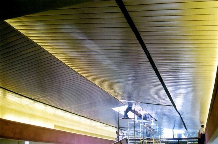 The Self-Support ceiling systems are both beautifully simple and functional. They require no suspension other than the edge trims at the walls on which they lay. Ideal system for small areas: corridors, pathways, toilets, services, bathrooms, kitchens, hallways and areas where the soffit is low and services light fittings, air-conditioning and ventilation grills as well as fire fighting systems are required. The Self-Support width mm.200-300 manufactures of prepainted aluminum or galvanized steel with thickness mm.0,5-0,6-0.7. The lengths are customized asper customer require. The self supporting system can be supplied both plain and perforated holes mm.2 - mm.3 with TNT acoustic soundproof nonwoven black fleece.