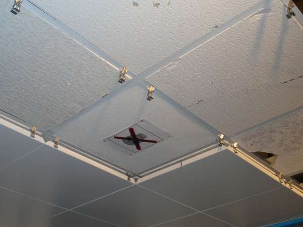 The panels mm.600x600 clip-in concealed system are suspended from a metal adjustment snap type "TWIN CLIP" clip on the main supporting runner fireproof T section mm.24xH38x3600 with aluminium prepainted capping corrosioproof complete of punching slots for suspension hangers each mm.600. The "TWIN CLIP" concealed suspension system warrant the perfect and quick installation alternatives of the old very difficult system of the steel pipes.